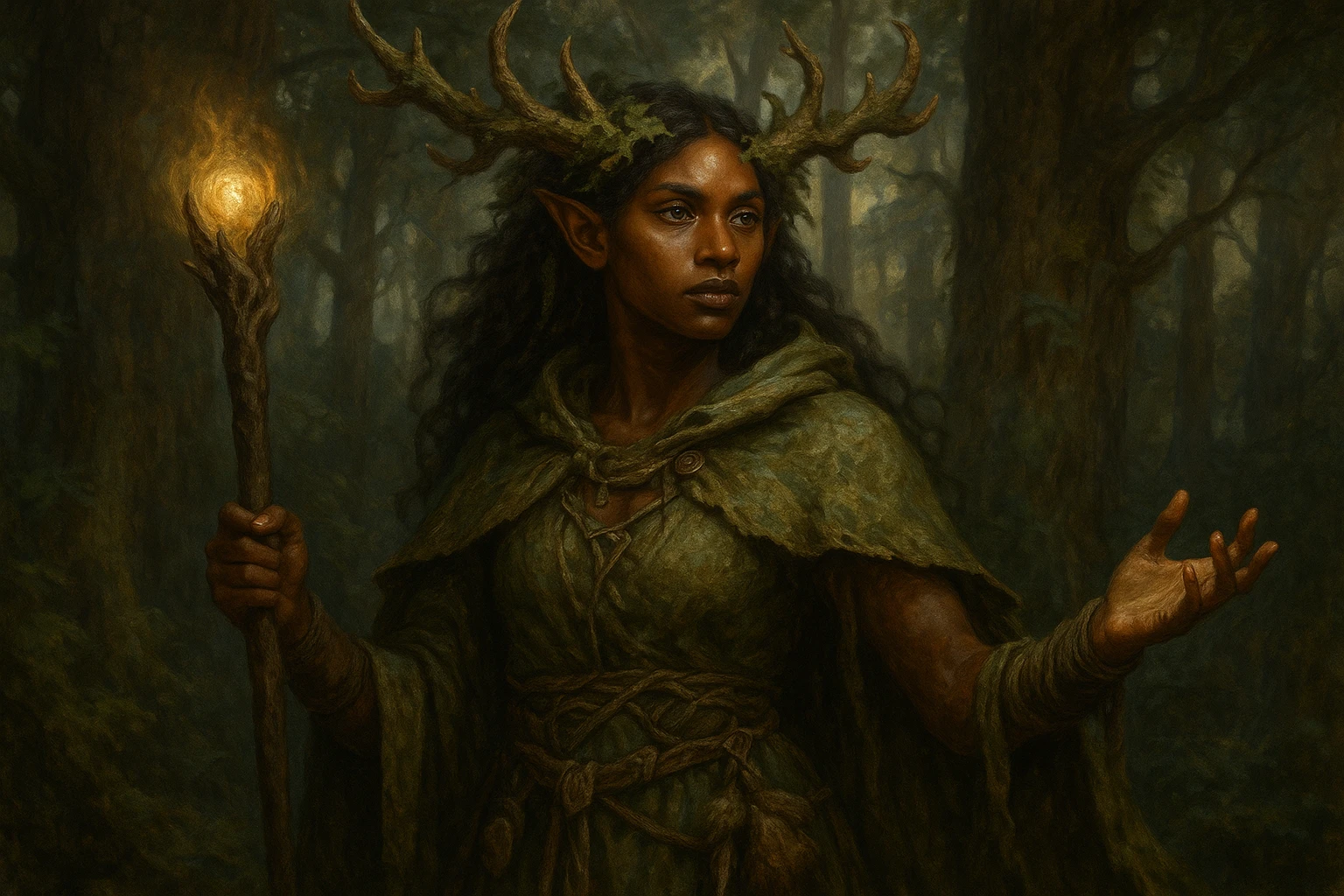 Druids are guardians of nature and its primal forces, tapping into the ancient magic that flows through the natural world. These wise and mystic individuals have a deep connection to the elements, plants, and animals, granting them unique abilities to shape-shift, commune with nature, and cast spells. Embracing their role as protectors, druids can transform into various animal forms, granting them versatility in combat and allowing them to explore environments with enhanced senses. They wield potent nature-based magic, capable of healing wounds, summoning creatures, and manipulating the elements to both aid allies and hinder enemies. Respecting the balance of the natural order, druids advocate for ecological harmony and stand against those who threaten it. Through their reverence for nature's wonders, druids offer a profound understanding of the world's interconnectedness, serving as stewards of the wild and defenders of its sanctity.